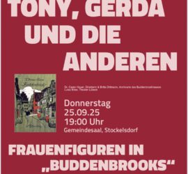 Nobelpreis-Literatur im Stockelsdorfer Rathaus Tony, Gerda und die Anderen Frauenfiguren in „Buddenbrooks“ am Donnerstag den 25.09.2025 um 19.00 Uhr im Sitzungssaal der Gemeinde Stockelsdorf Anlässlich des 150. Geburtstages von Thomas Mann, einem der prägendsten deutschen Schriftsteller des 20. Jahrhunderts, hat das Buddenbrookhaus zu Lübeck eine besondere Veranstaltung exklusiv für Stockelsdorf erarbeitet. Im Zentrum stehen die […]