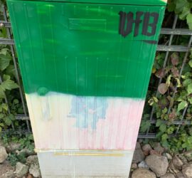 Vandalismus: Graffiti auf Stromkasten In der Nacht vom 02.10. auf den 03.10.2025, bzw. in den frühen Morgenstunden des 03.10.2025 wurde ein Stromkasten (Höhe Hauptstraße 67) mit den VFB-typischen Vereinsfarben, sowie dem Vereinsschriftzug mutwillig besprüht. Besonders ärgerlich ist dies, weil der Stromkasten ein Teil des „Kunstprojekts Stromkästen“ ist und bereits mit viel Liebe kreativ gestaltet wurde. […]