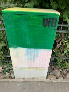 In der Nacht vom 02.10. auf den 03.10.2025, bzw. in den frühen Morgenstunden des 03.10.2025 wurde ein Stromkasten (Höhe Hauptstraße 67) mit den VFB-typischen Vereinsfarben, sowie dem Vereinsschriftzug mutwillig besprüht.