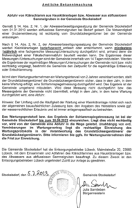 Abfuhr von Klärschlamm aus Hauskläranlagen, bzw. Abwasser aus abflusslosen Sammelgruben in der Gemeinde Stockelsdorf.