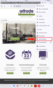 | Klicken Sie auf Einstellungen (drei Punkte) und anschließend auf „App installieren“. |