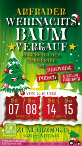 Auf dem Hof Thielsen in Arfrade (zum Brook 15) findet am zweiten und dritten Adventswochenende ein Weihnachtsbaumverkauf statt.